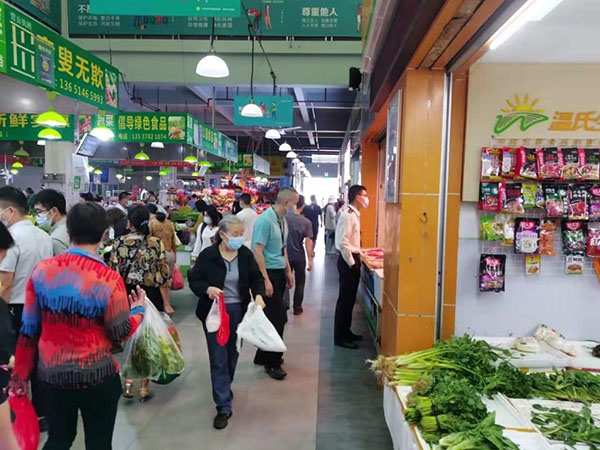 3月13日,深圳市疫情防控繼續加碼,當晚全市各店鋪出現不同程度排隊購菜、果蔬生鮮售罄的現象。龍華區地處深圳市中軸,外來(lái)務(wù)工人員、工業(yè)廠(chǎng)區集中分布,面對防疫工作的加緊,保障轄區居民農產(chǎn)品日常需求壓力更大。